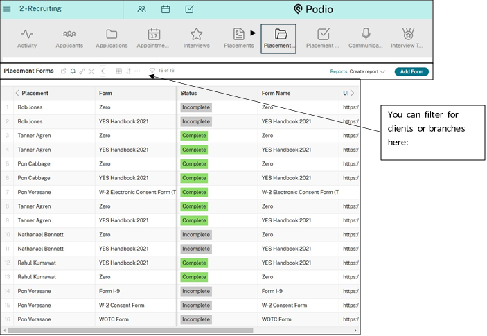 Step 2: Under “Placement Forms” section, you will see a list of all employees currently onboarding.