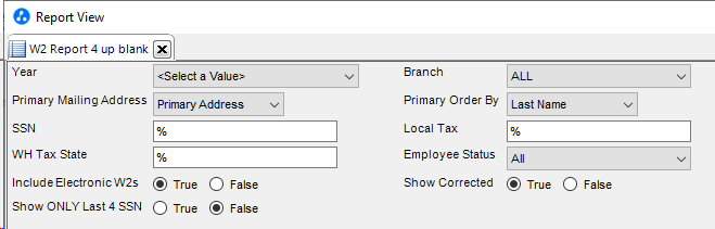 Please note that the W2 will only print using the original information (incorrect) Use the example below to print. Making sure to Include Electronic W2, show complete SSN & Show CORRECTED (Enter the incorrect SSN with no dashes)