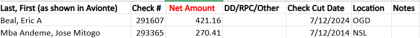 Each check must have its own row.