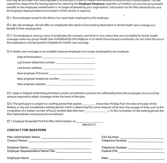 If you marked 1, 3 or 4, and the employee is no longer working or just started working, complete the bottom section with Employer Name, Rep, phone and fax #s, and fax this page and the first page back to the issuing state agency.