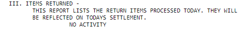 Locate Section III (Items Returned)