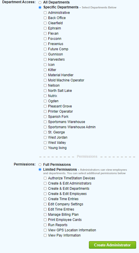 Fill out Admin name, and admins email, expand Department access and give access to needed branches.